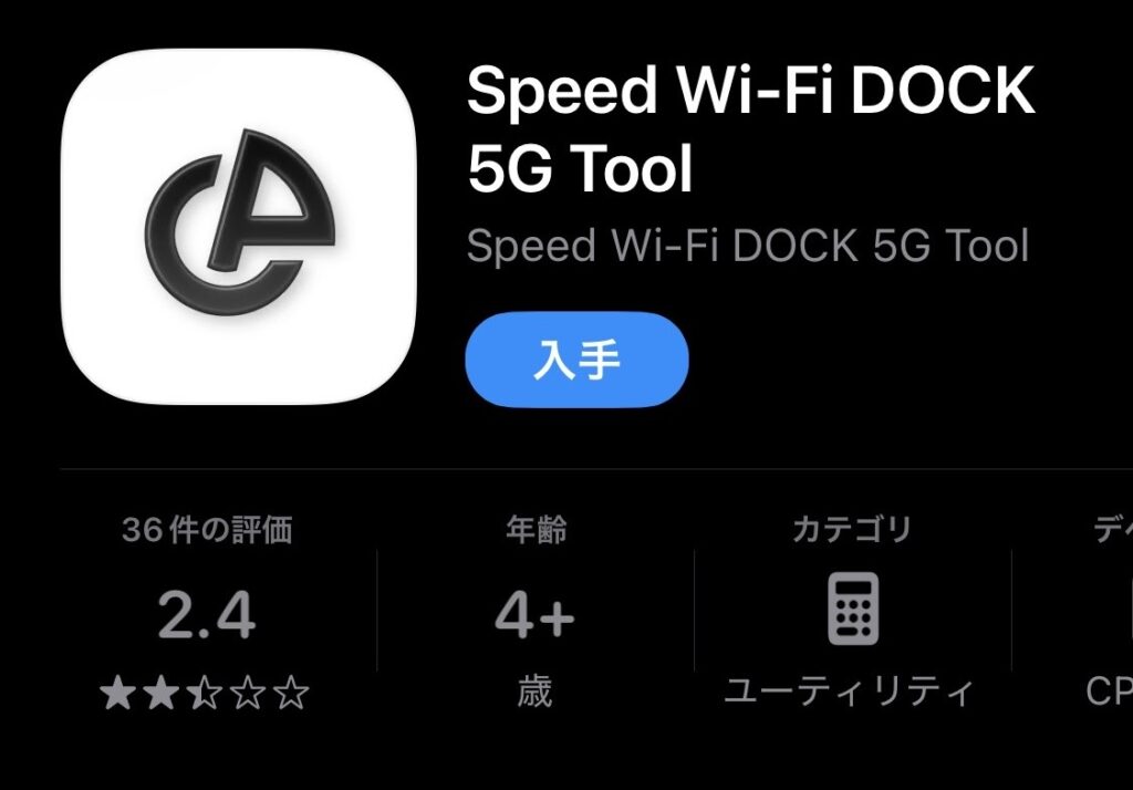 まず最初にスマートフォンにて「Speed Wi-Fi DOCK 5G Tool」というアプリをインストールします。