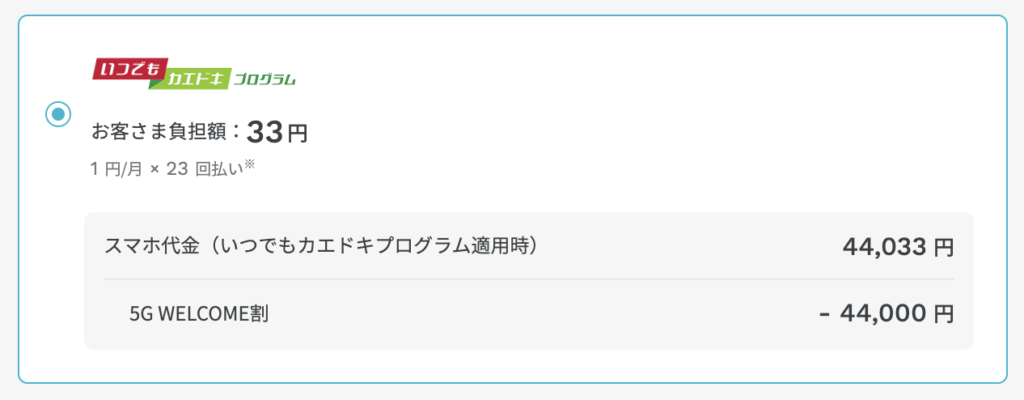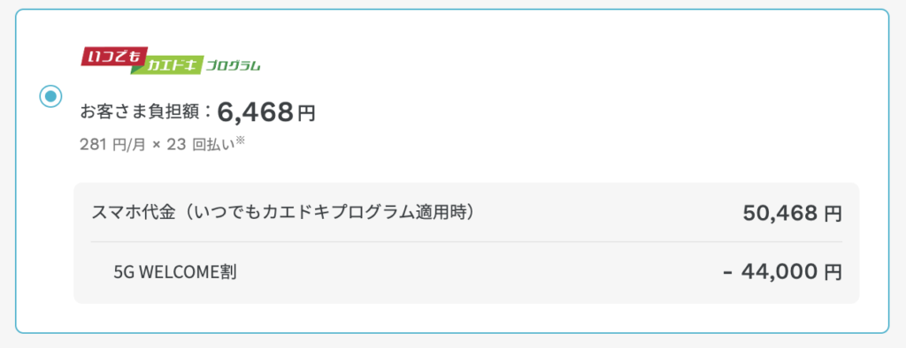 尚、短期解約は避けるのが無難ですが、カエドキプログラム利用中でもahamoは途中解約も可能です。2年間の通信費合計は約6,468円と、非常に低コストでiPhone17を使えます。